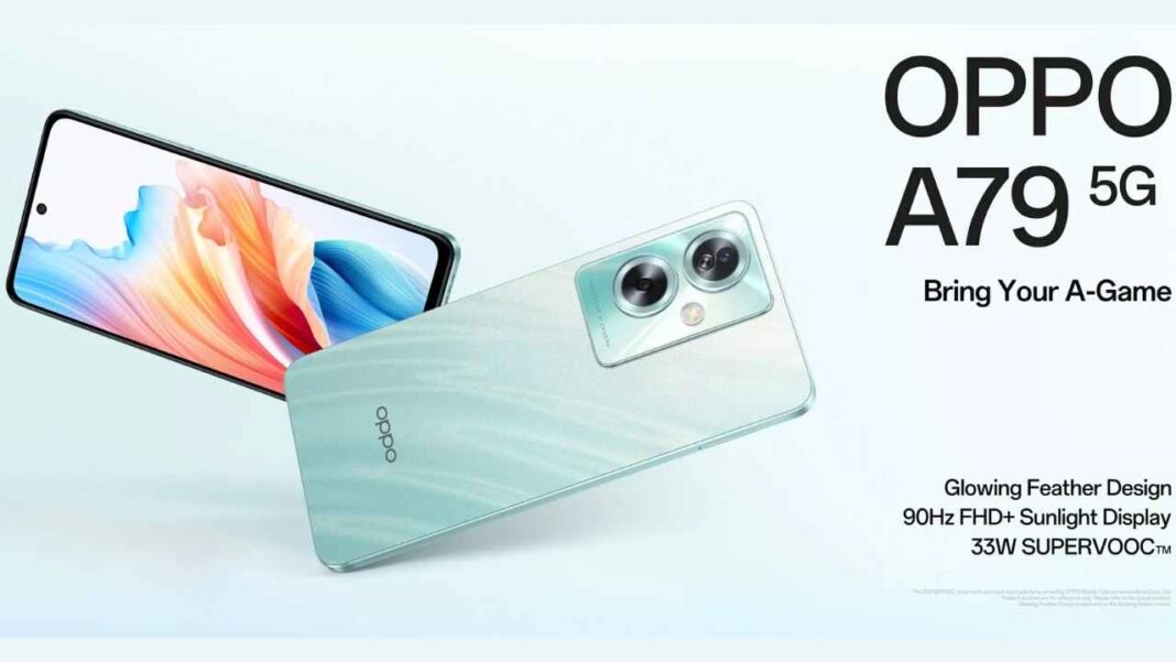 The A79 5G showcases a stylish and slim design, with a thickness of just 7.99mm and a weight of 193g. It’s available in eye-catching finishes like “Glowing Green” and “Mystery Black.” The Glowing Green variant features a unique “Glowing Feather Design” that shimmers in the light, adding a touch of elegance.